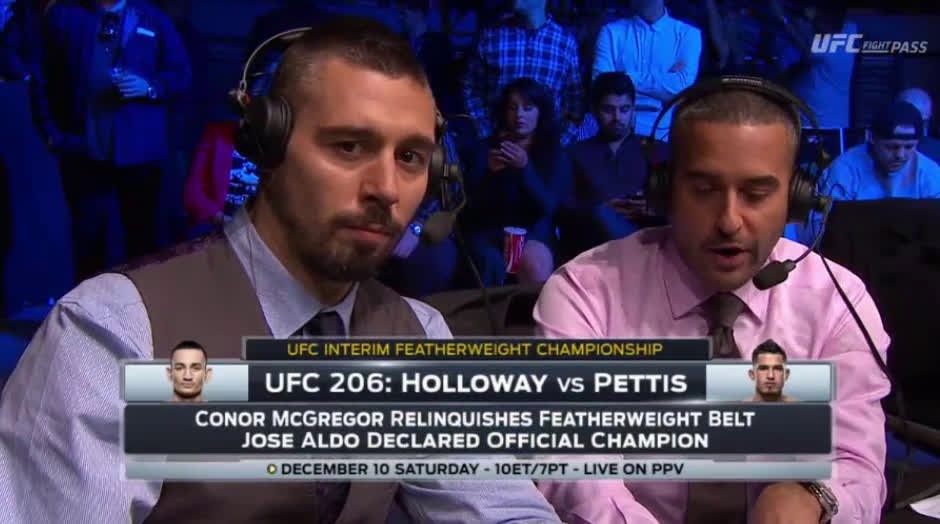 Holloway vs. Pettis por el cinto interino. Ahora quiero ver a Aldo defender cada cuatro meses si no está lesionado, no espero menos Pepe.